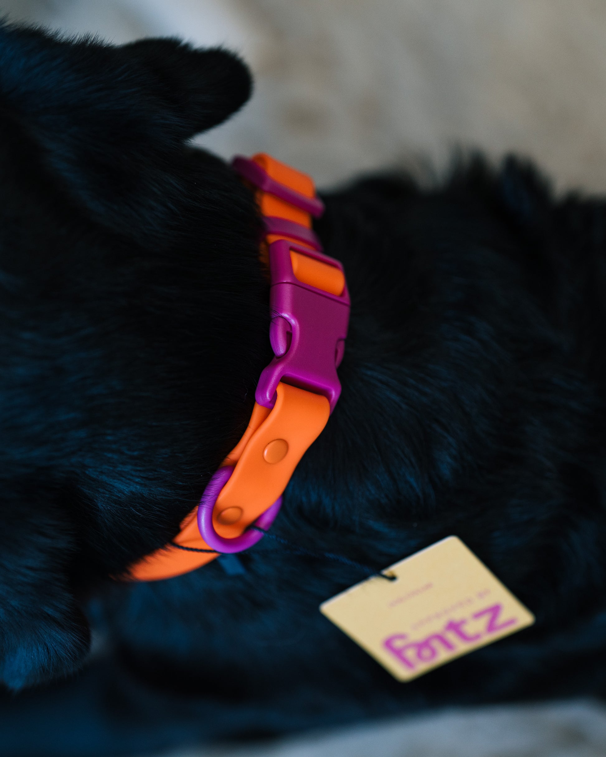 Detta vattentäta halsband är lätt att rengöra, har en säkerhetslåsning och går smidigt att justera efter din hunds hals. Ta med din hund på promenad med inslag av färg – inspirerat av stadens liv och rörelse.