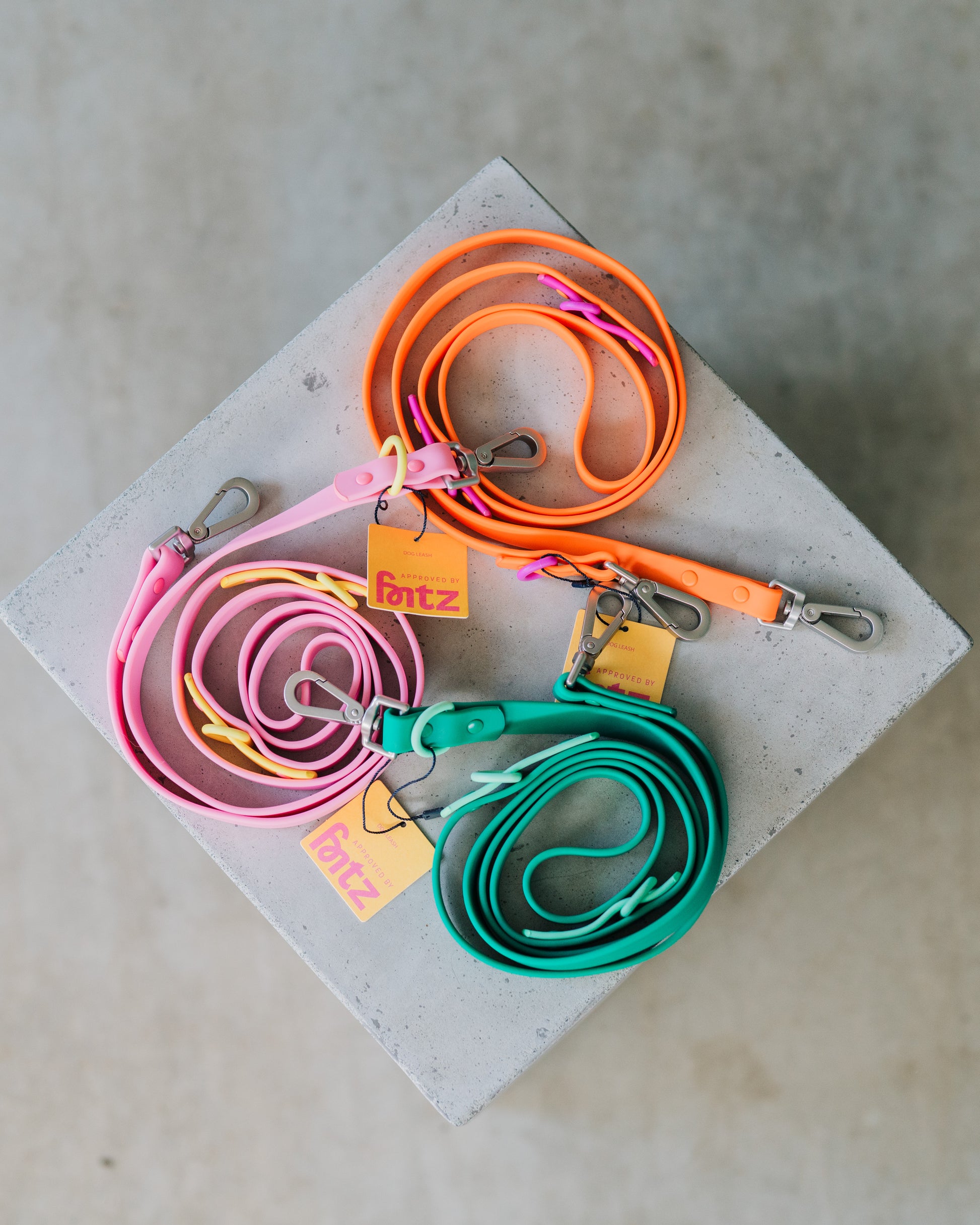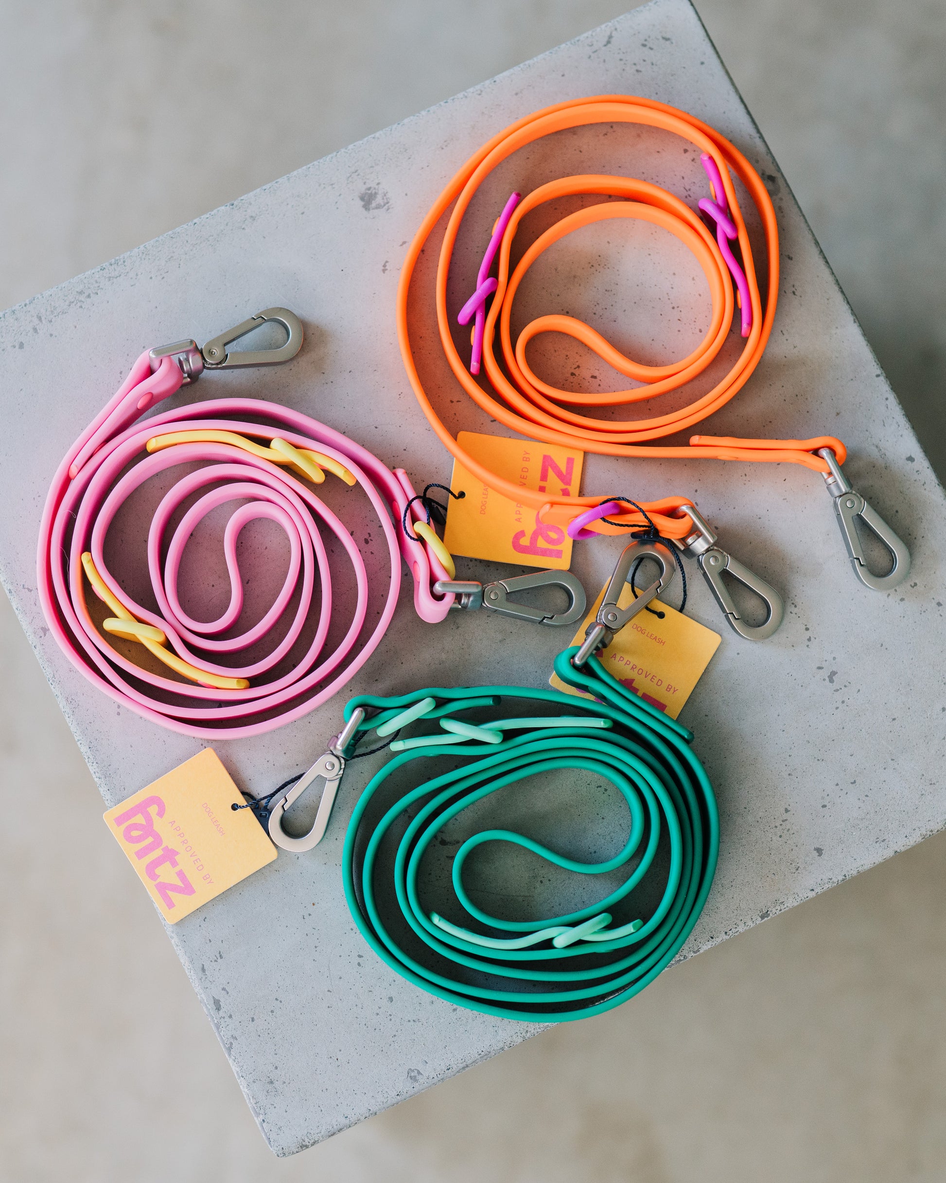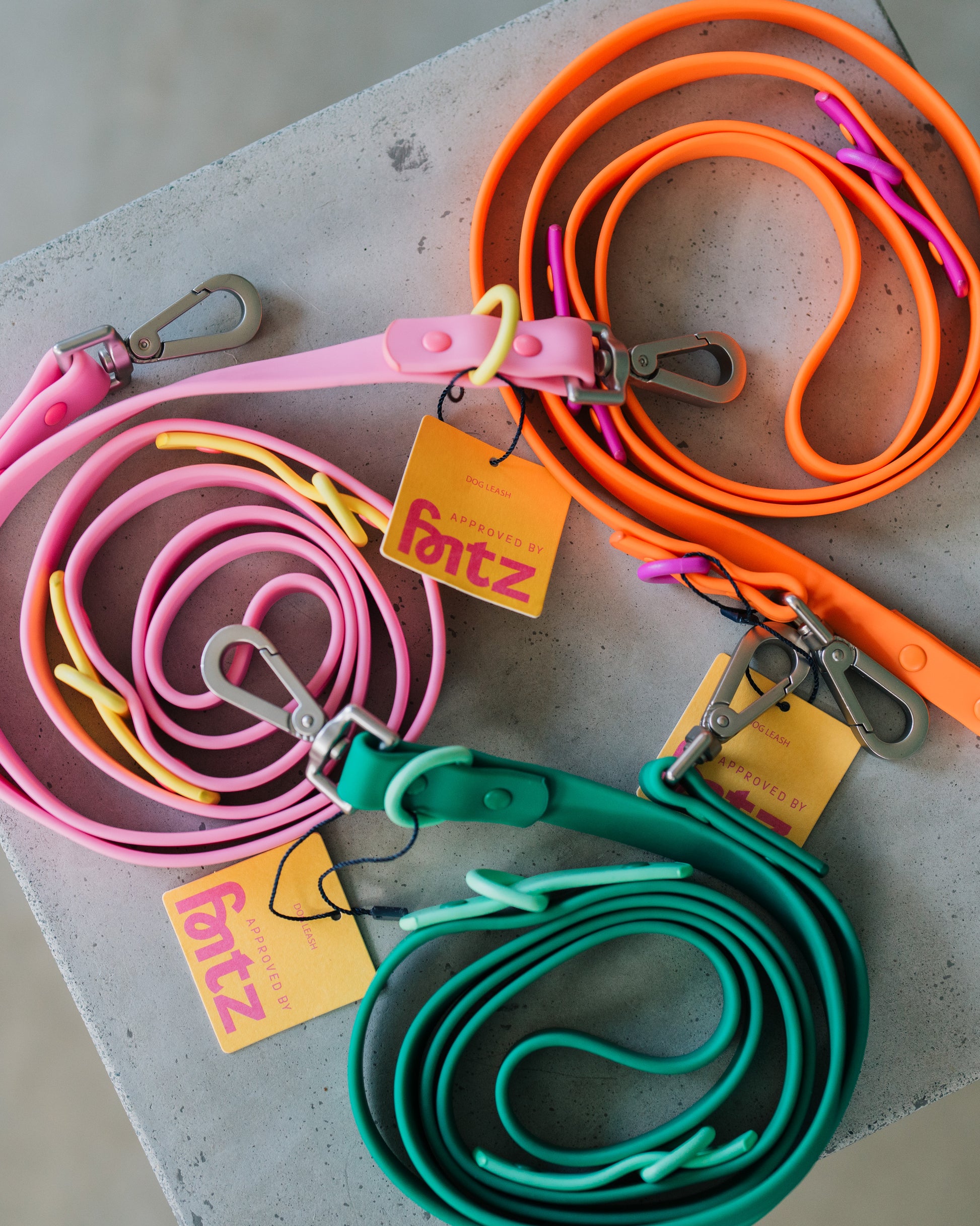 Justerbart på tre sätt: anpassa längden, eller bär kopplet hands‑free.