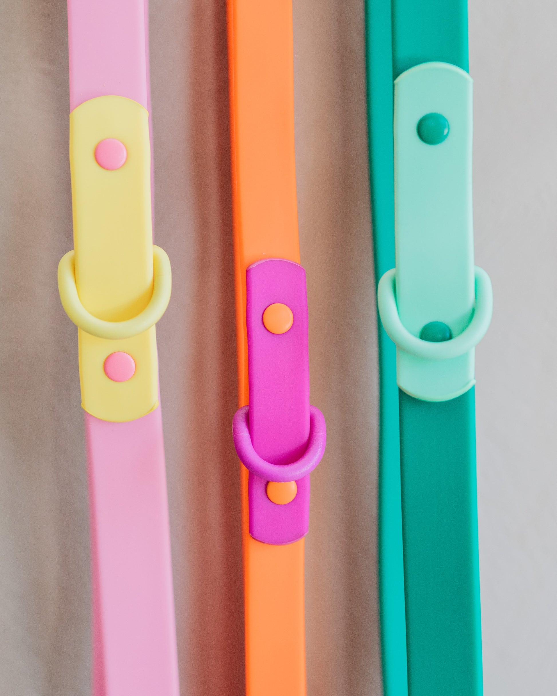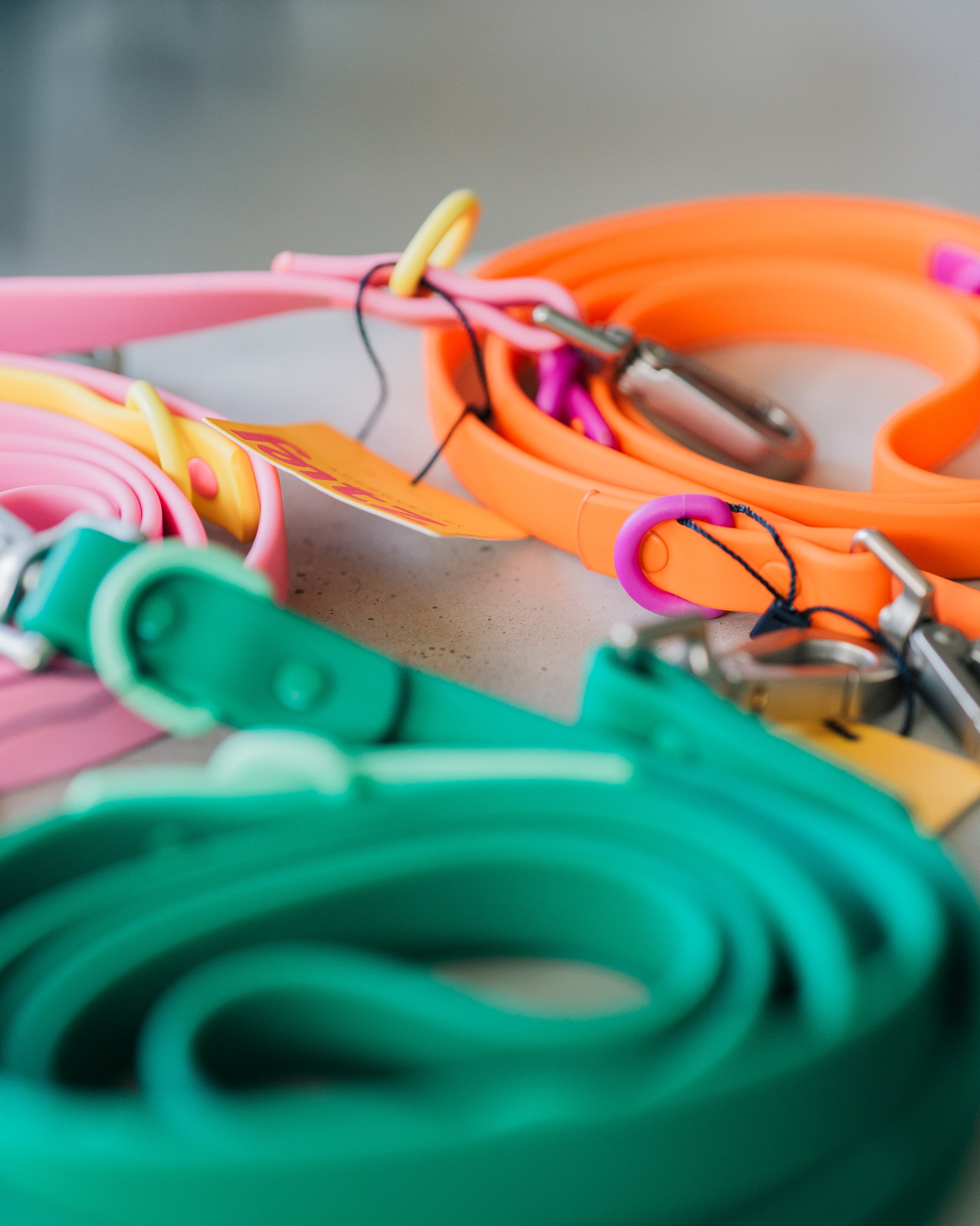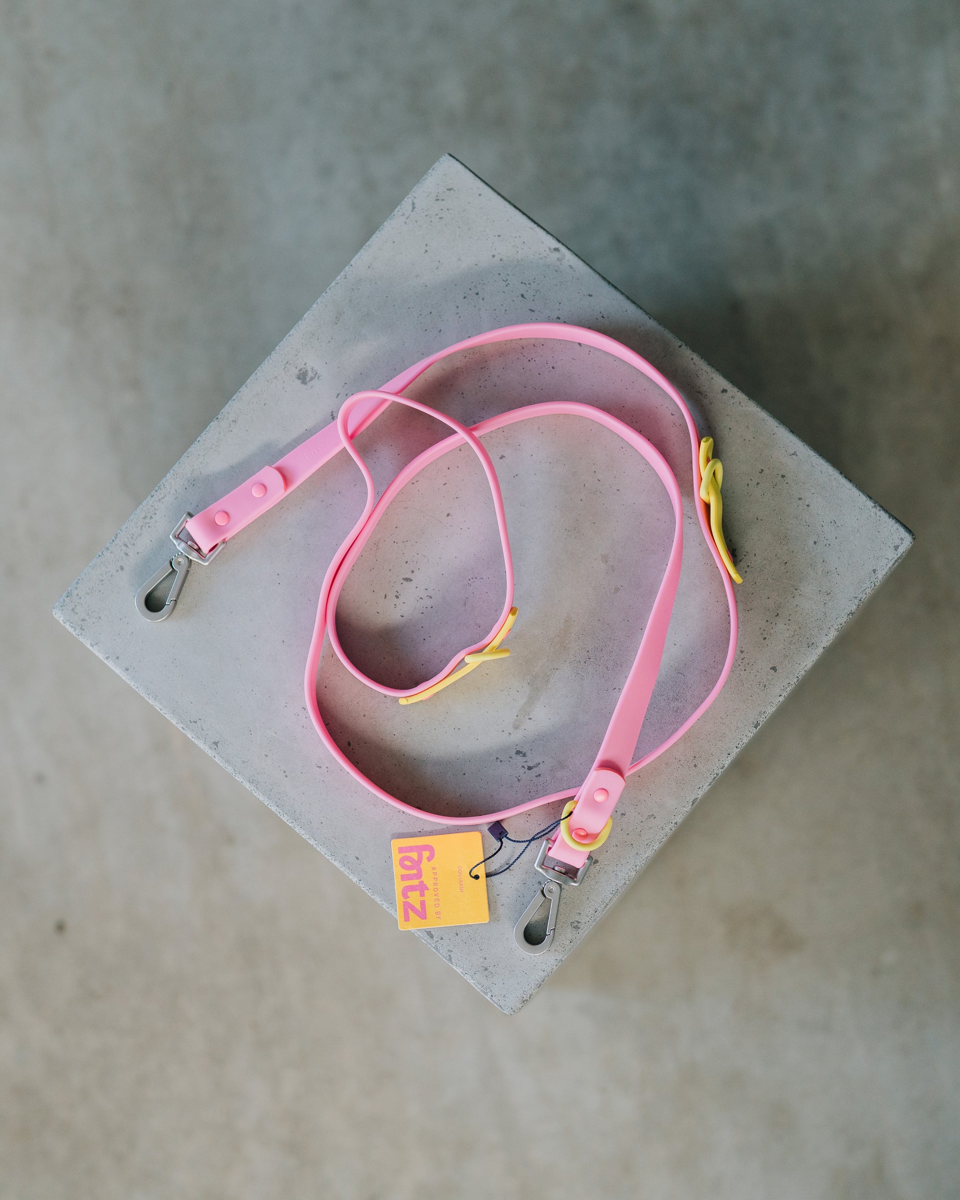 Justerbart på tre sätt: anpassa längden, eller bär kopplet hands‑free.