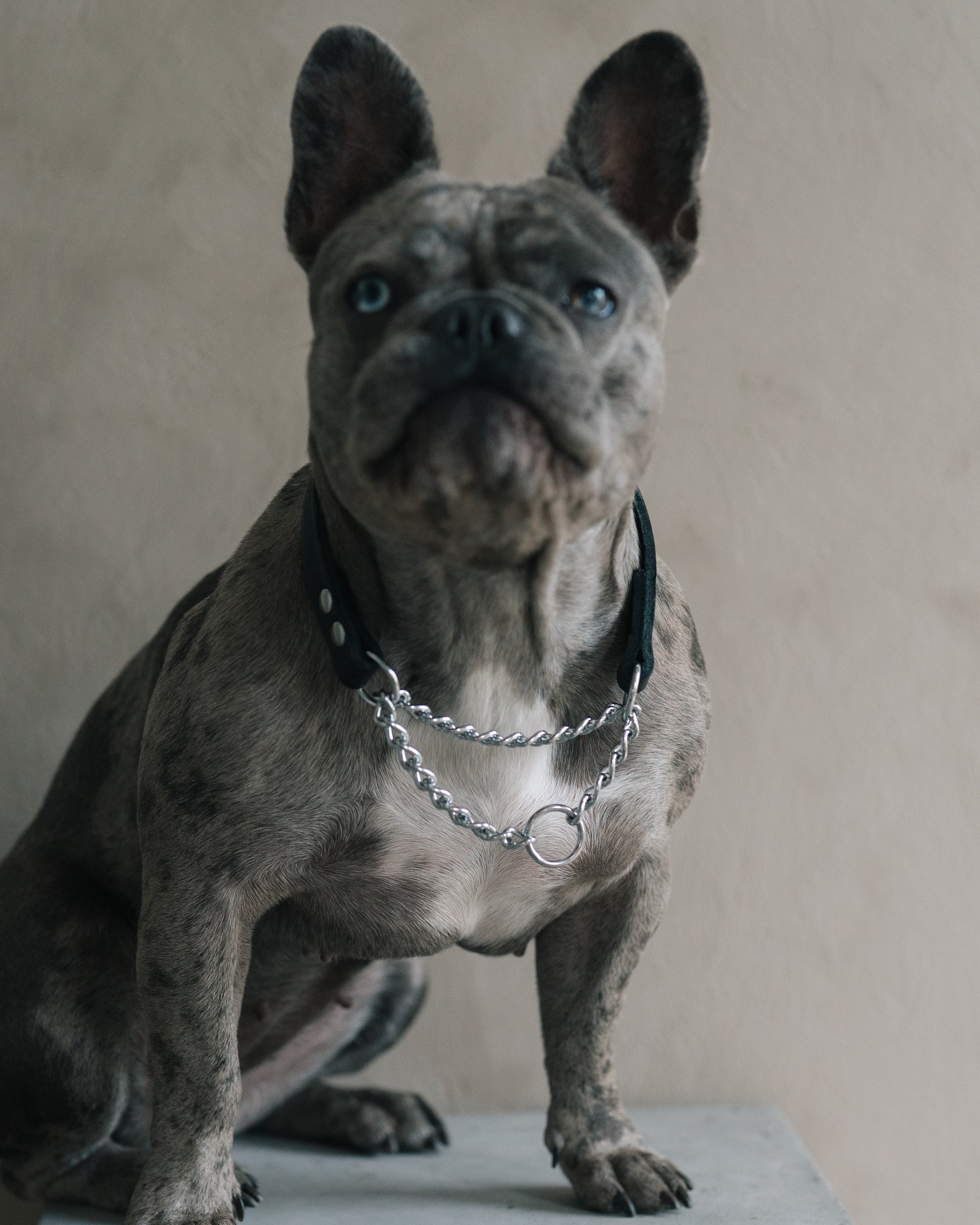 Ett snyggt och naturligt halsband i råläder som sitter löst tills kopplet spänns — då ger det lite mer kontroll. Råläder är slitstarkt och blir mjukare med tiden, vilket gör det bekvämare för din hund. Utseendet blir bara bättre desto mer det används. Perfekt för dig som vill ha något både hållbart och stilrent.